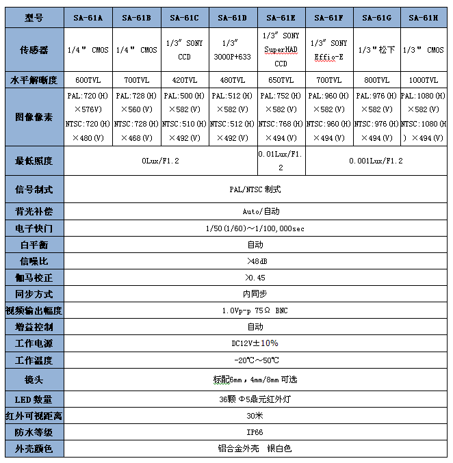30米紅外全天候中型防雨紅外夜視攝像機(jī) (36顆Ф5紅外燈 照度0Lul 紅外距離30米,標(biāo)配F=6mm,鏡頭4mm/8mm可選)